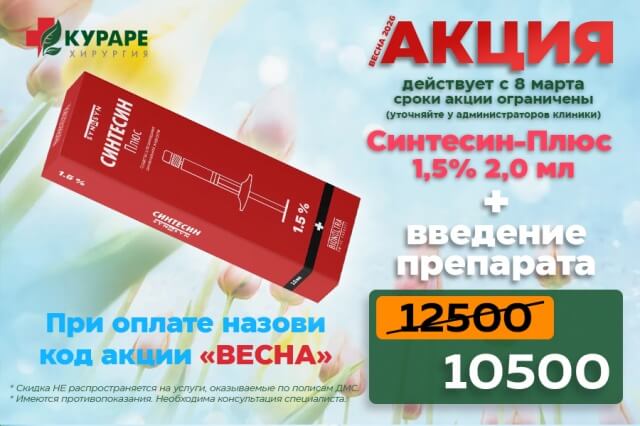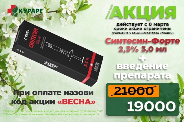При оплате назови код акции "ВЕСНА" * скидка НЕ распространяется на услуги, оказываемые по полисам ДМС. * Имеются противопоказания. Необходима консультация специалиста.